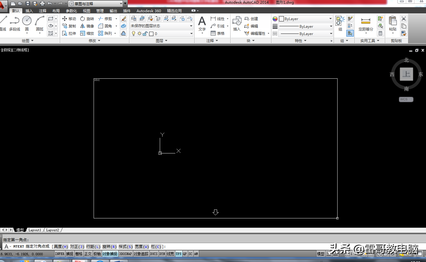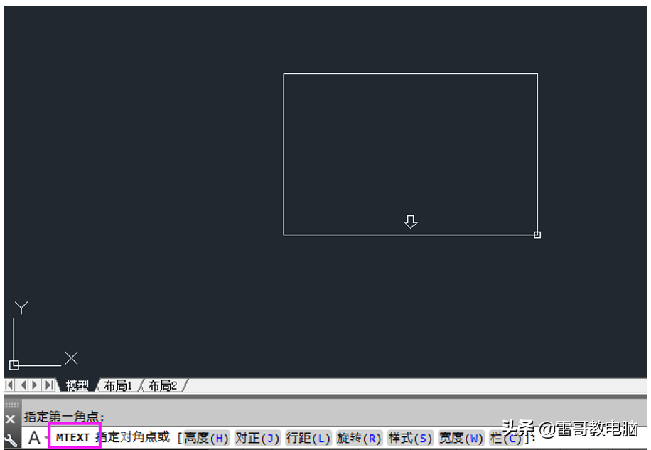 输入快捷键T-空格键,点击窗口任一点为起点,输入H文字高度