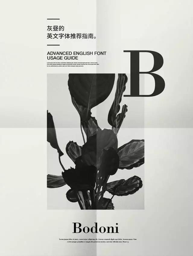 另一款著名的衬线字体字体是Bodoni,Bodoni的出生晚于Didot。 经常会把这两种字体放在一起做比较。Bodoni的笔画在保留优雅的字形的同时更加粗壮。易用性上比Didot高了很多。