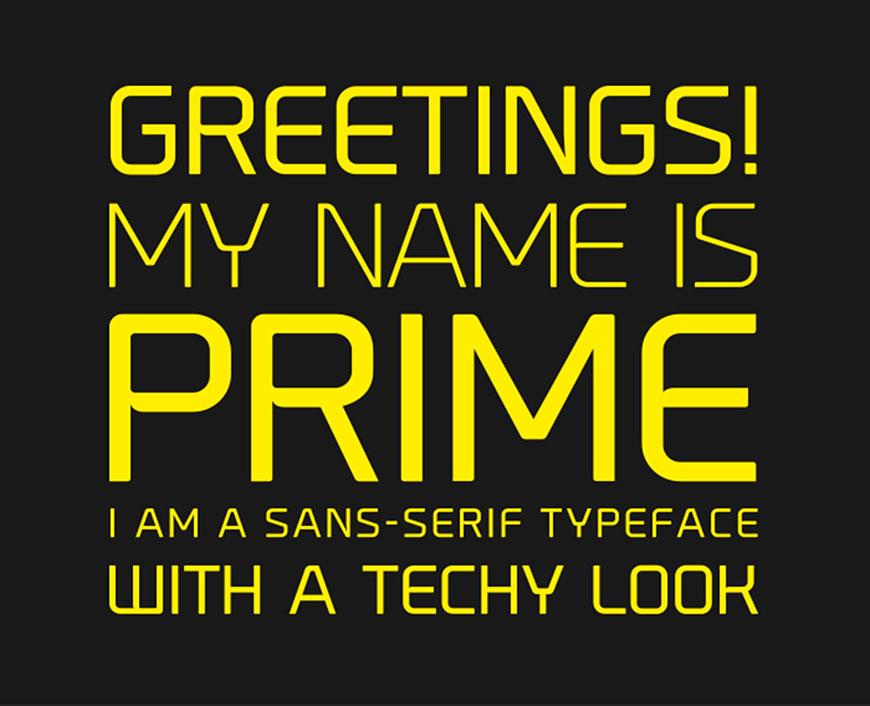 Prime 是一个看上去简单,但外观具有科技感和严格的圆角的字体。设计师是保加利亚的 Max Pirsky,他想创造出一种既能在各种尺寸下都有优良可读性,同时和其他字体相比又有足够的差异性的字体。从标题到正文文本,该字体可以使用在多种不同的地方。该字体是可以免费用于商业项目的。