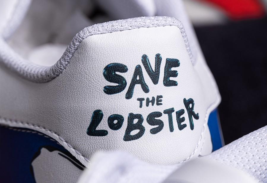 鞋侧与鞋舌还隐藏着带着皇冠的龙虾图案,呼应 “SAVE THE LOBSTER” 主题。