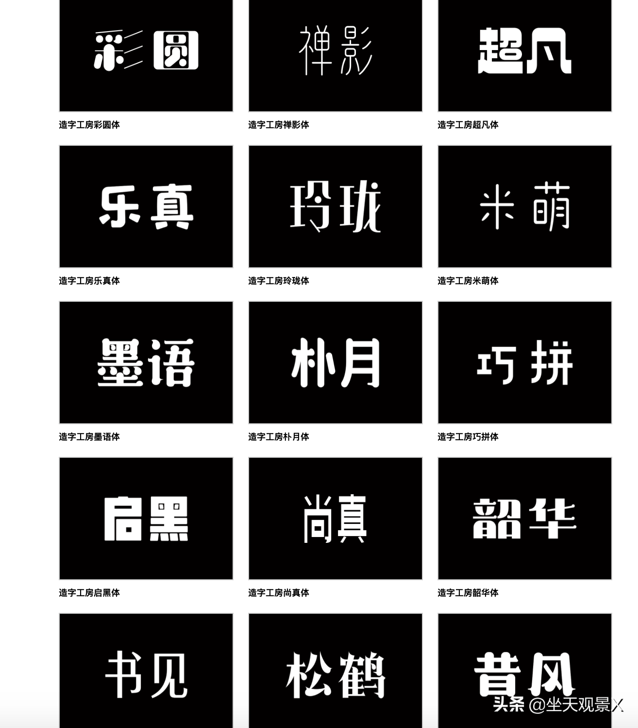不管你是一个专业后期人员,还是一个业余爱好者,当然也不管你是使用ps也好,premiere也罢,总会用到字体。在电脑上打开某秀秀都会用到字体。那今天,大家分享一个字体包:史上最全造字工房字体,一共65个!!毫不夸张的说,对于一个业余爱好者来说,有了这个最全的字体压缩包,你已经可以应付绝大多数的设计要求了。领取方式在文末。