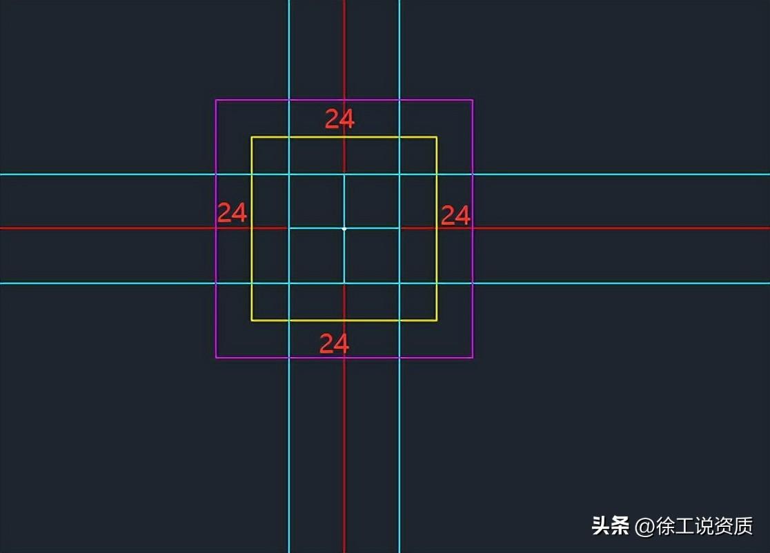 新增钢筋只配在新增的混凝土范围内,所以,下图输出的新增钢筋需四条边每边各配24mm?。