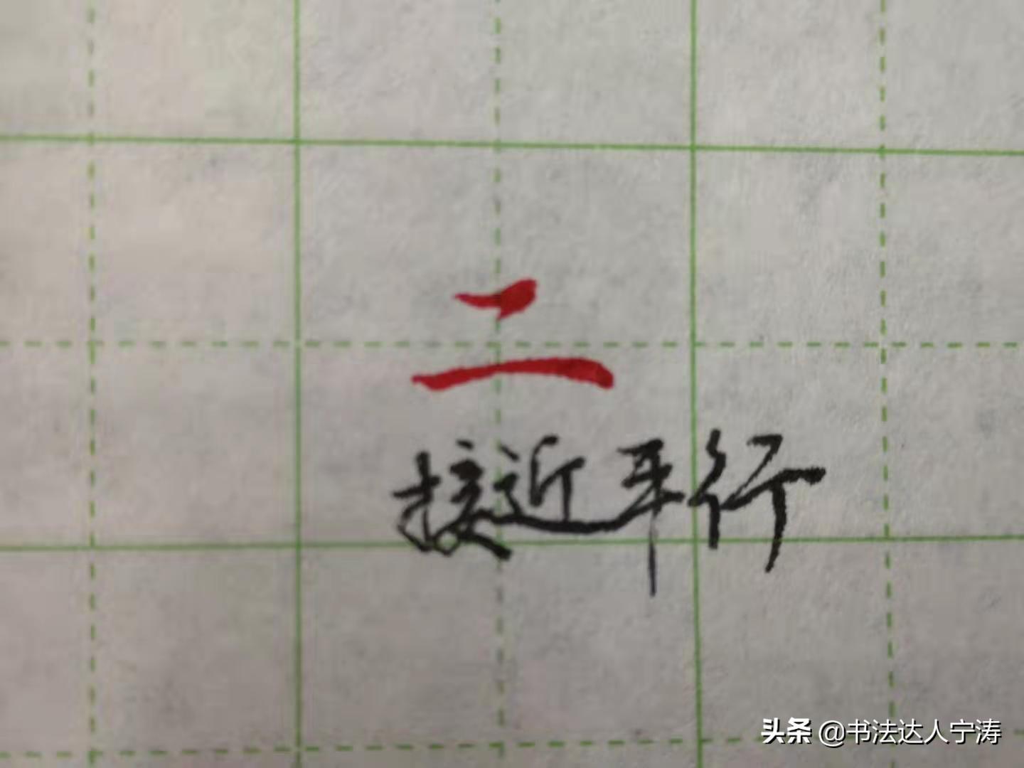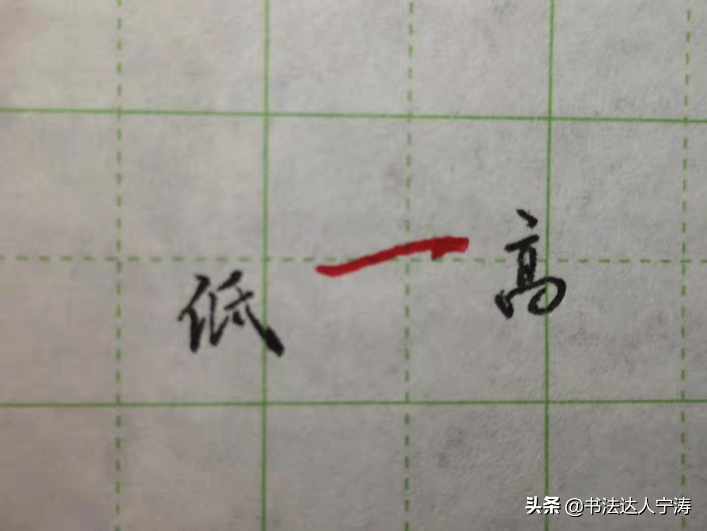一字,其实就是长横,书写的时候要扛肩,要左低右高。