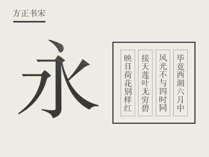 方正书宋的字形端正清秀,中宫适度。凭着清晰爽目、久读不易疲劳、印刷适性好的优点,长期被作为杂志和书籍的正文首选字体,所以也是一款非常经典的正文宋体。