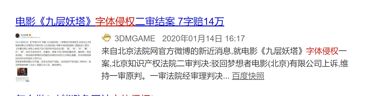 刚刚,电影《九层妖塔》因为字体侵权,仅仅7个字赔款14万元!