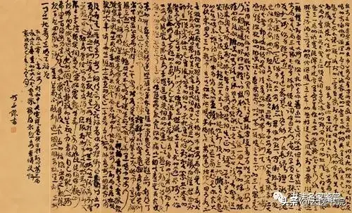 狂草始于唐代张旭,由今草向狂肆的方向演化而成,笔势连绵,放纵不羁,一笔数字,气贯隔行。狂草与大草有时混称,二者仅有狂放程度之别,均难辨识。狂草一派神行,无行无列(打破行列界限),大草则虽放犹有节制。大草名家除张旭外,还有与“颠张”并称的“醉素” 一一唐代怀素上人以及宋代黄山谷、明祝枝山、明末清初王铎等人。