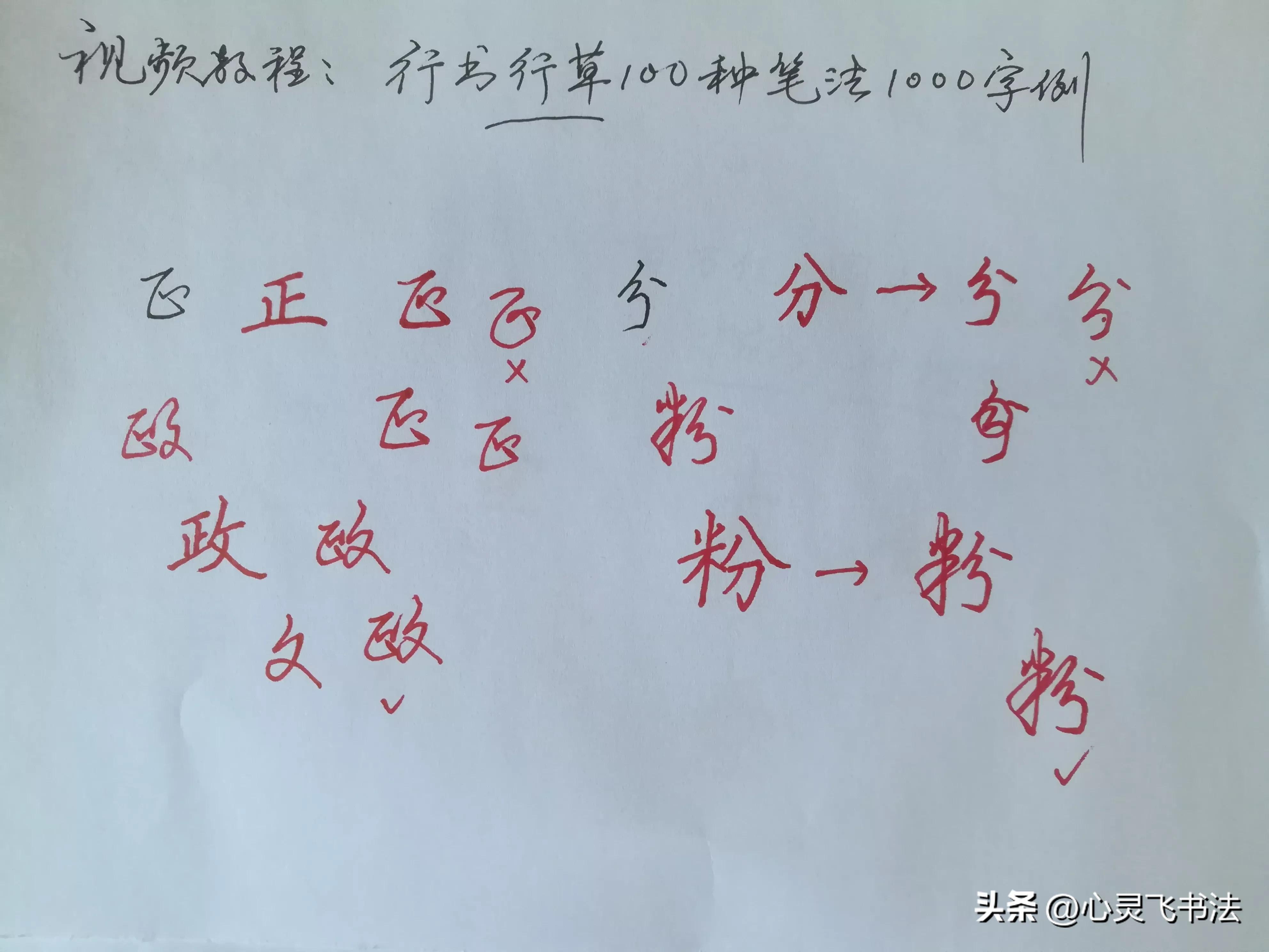 有时候,写“行草”字体,可以改变“笔顺”,与楷书的笔顺可以不一样。如图所示,“正”字的行草字体写法,就改变了笔顺,还有“分”字则是改变了笔顺。
