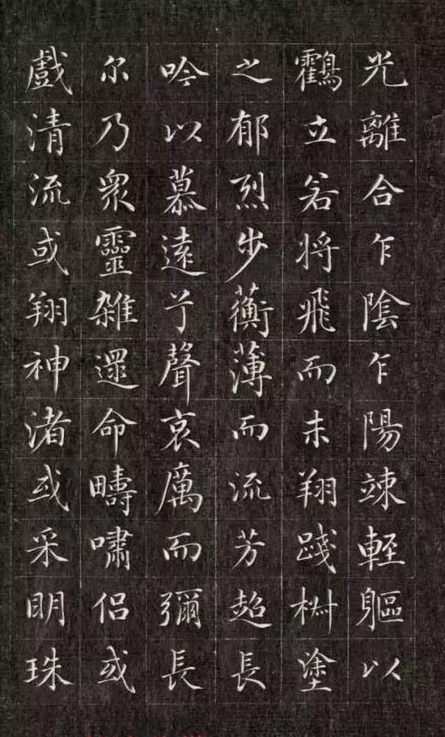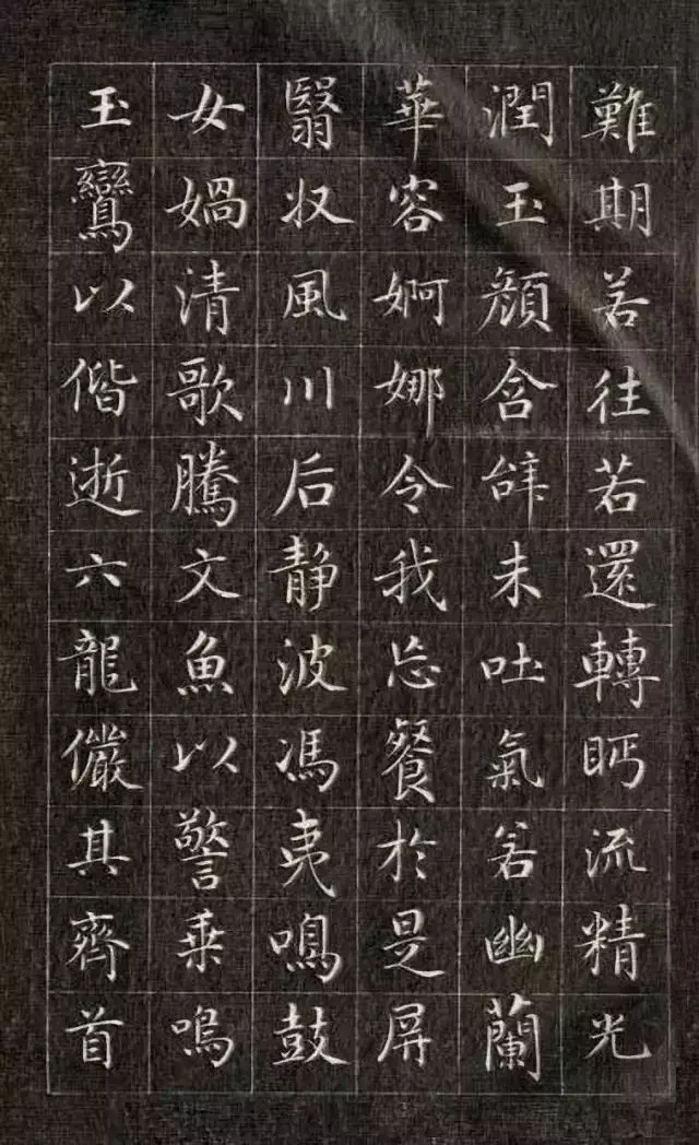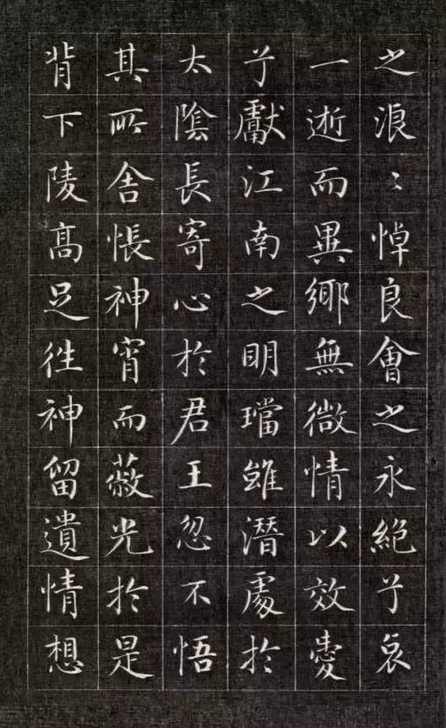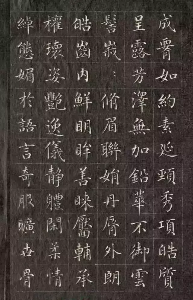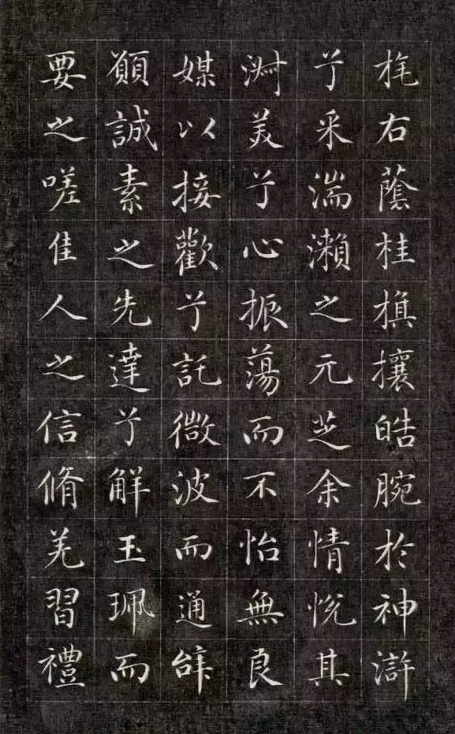 《洛神赋》是东晋王献之楷书代表作,原墨迹写在麻笺上,内容为三国著名文学家曹植著名文章《洛神赋》。此作王献之用笔挺拔有力,风格秀美,结体宽敞舒展。字中的撇捺等笔画 往往伸展得很长但并不轻浮,笔力运送笔画末端,遒劲有力,神采飞扬。字体匀称和谐,各部分的组合中又有细微生动的变化,字的大小不同,字距、行距变化自然。