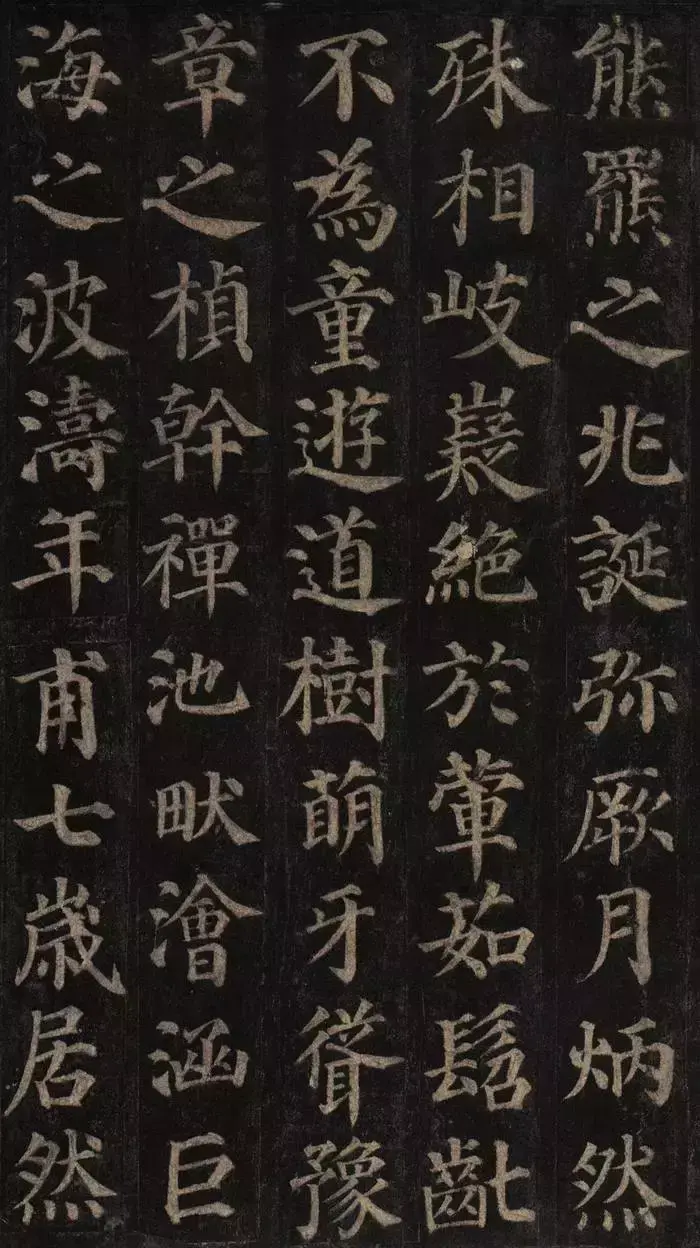 此碑整体秀美刚劲,清爽宜人,简洁明快,字字珠玑。用笔丰厚遒美,腴润沉稳;横细竖粗,对比强烈;起笔多露锋,收笔多锋,转折多顿笔。结体严谨道密,紧凑规整,平稳匀称,又碑版精良,存字较多,学颜体者多从此碑下手入其堂奥。