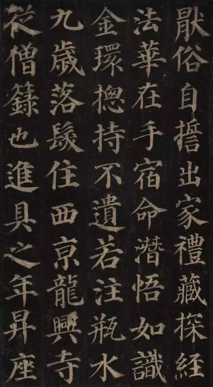 褚遂良《雁塔圣教序》,是书法史上著名碑刻作品,为褚遂良五十八岁时书,是最能代表褚遂良楷书风格的作品,字体清丽刚劲,笔法娴熟老成。在字的结体上改变了欧,虞的长形字,创造了看似纤瘦,实则劲秀饱满的字体。《雁塔圣教序》在运笔上则采用方圆兼施,逆起逆止;横画竖入,竖画横起,首尾之间皆有起伏顿挫,提按使转,规矩入神。