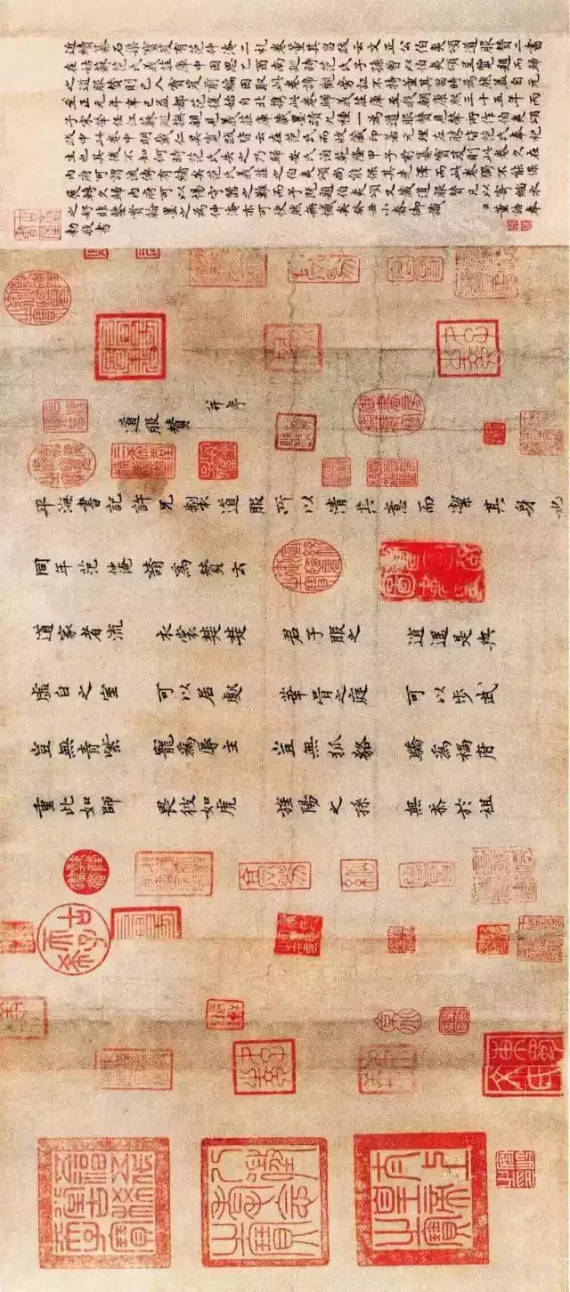 姜夔《跋王献之保母帖》,小楷。纸本,三百一十六毫米,全文计一百零一行,现藏于故宫博物院。姜夔传世墨迹不多。从小楷《跋王献之保母帖》中可以看出他用笔精到,典雅俊润,且受初唐诸家书风影响,不随时俗,清新脱俗。