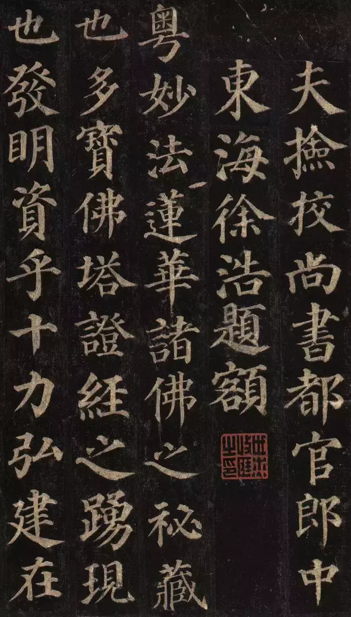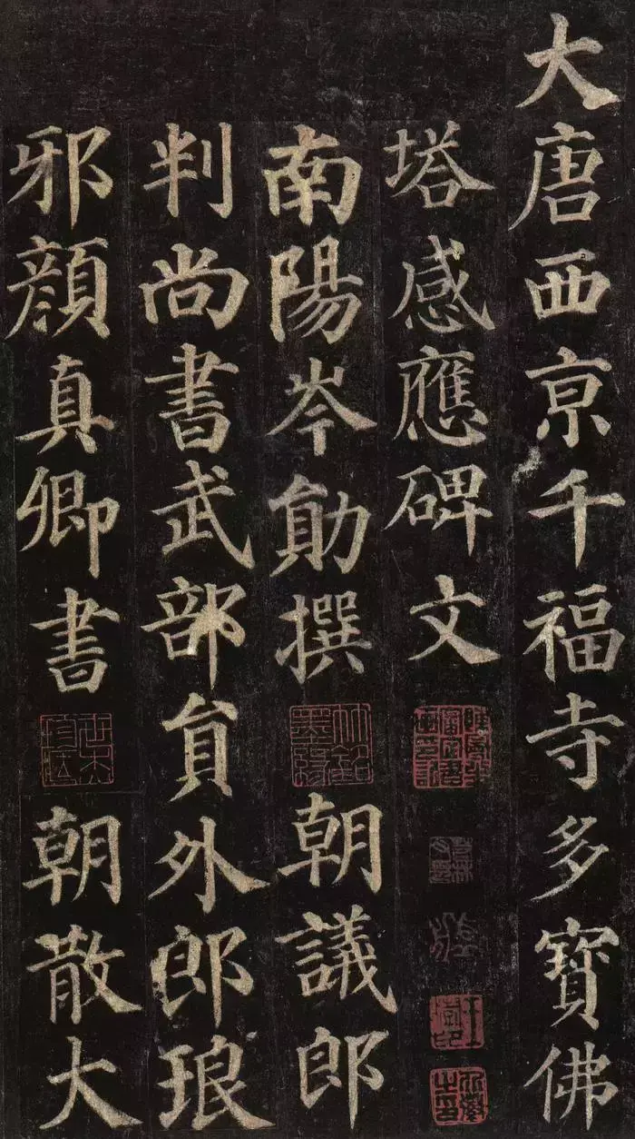 颜真卿《多宝塔碑》,是唐天宝十一年(752年)由当时的文人岑勋撰文、书法家徐浩题额、书法家颜真卿书丹、碑刻家史华刻石而成的经典楷书作品。