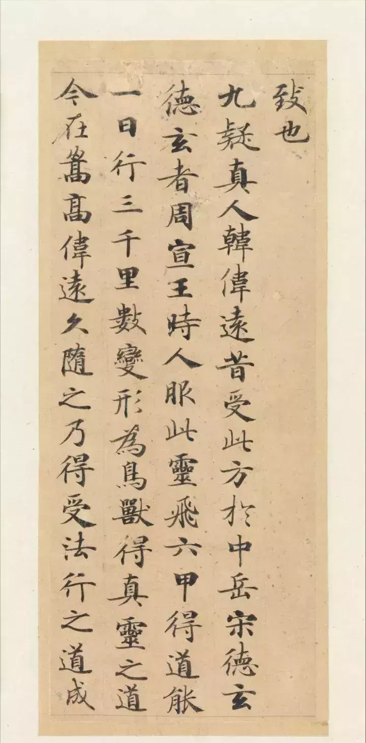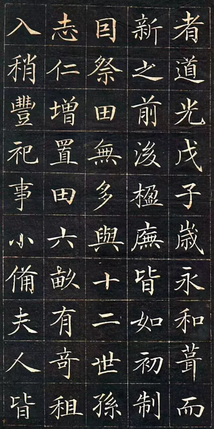 赵孟頫《玄妙观重修三门记》是其楷书经典代表作,纸本现收藏于日本东京国立博物馆,以之为底本的石刻位于苏州玄妙观正山门内。赵氏用笔,一方面恪守中锋、顺势的原则,一方面又融合行书的笔法,从而形成了或藏锋痕迹含蓄,或露锋意味明朗的风格。既不同于魏晋、南北朝书法的工整、严谨,也优于唐楷的法度森严与精雕细琢,使其行气十足,清新典雅,雅俗共赏。