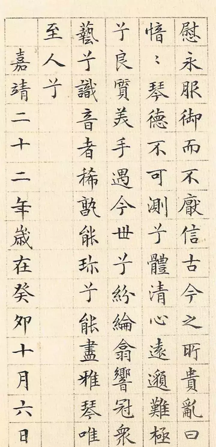文征明《琴赋》,小楷,74岁时作,此帖为文征明成熟时期小楷精品,点画谨严,结构规整,法度严谨纯熟,结体稳健,善于留白。文微明小楷不仅仅是“秀整而已” 它师法晋、唐而不为其面目所囿,不但点画挺劲遒媚,笔势翩翩,而且气象开阔,历史上很多小楷名作做不到这一点。可以这样说,文微明小楷以一种新的审美情趣,丰富了中国书法。