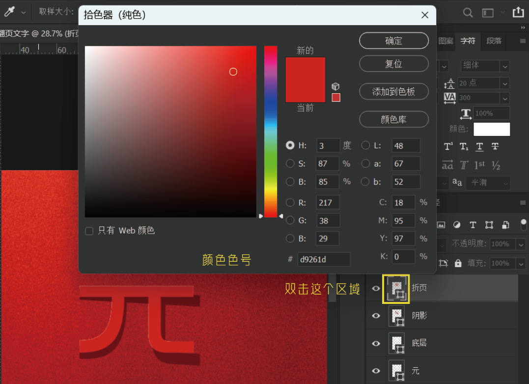 10. 选择“折页” 双击“图层缩略图”填充和背景一样的颜色d9261d(用吸管工具吸取背景颜色)