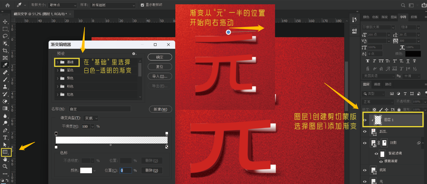 *重复同样的操作,我们可以制作“旦”字,是不是还挺简单的呢,在添加装饰,一两张立体创意字的节日海报就做好了。老板见了都得夸!每天五分钟,快点练习起来吧~