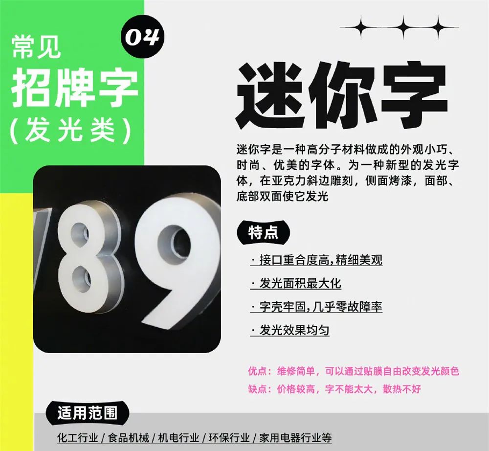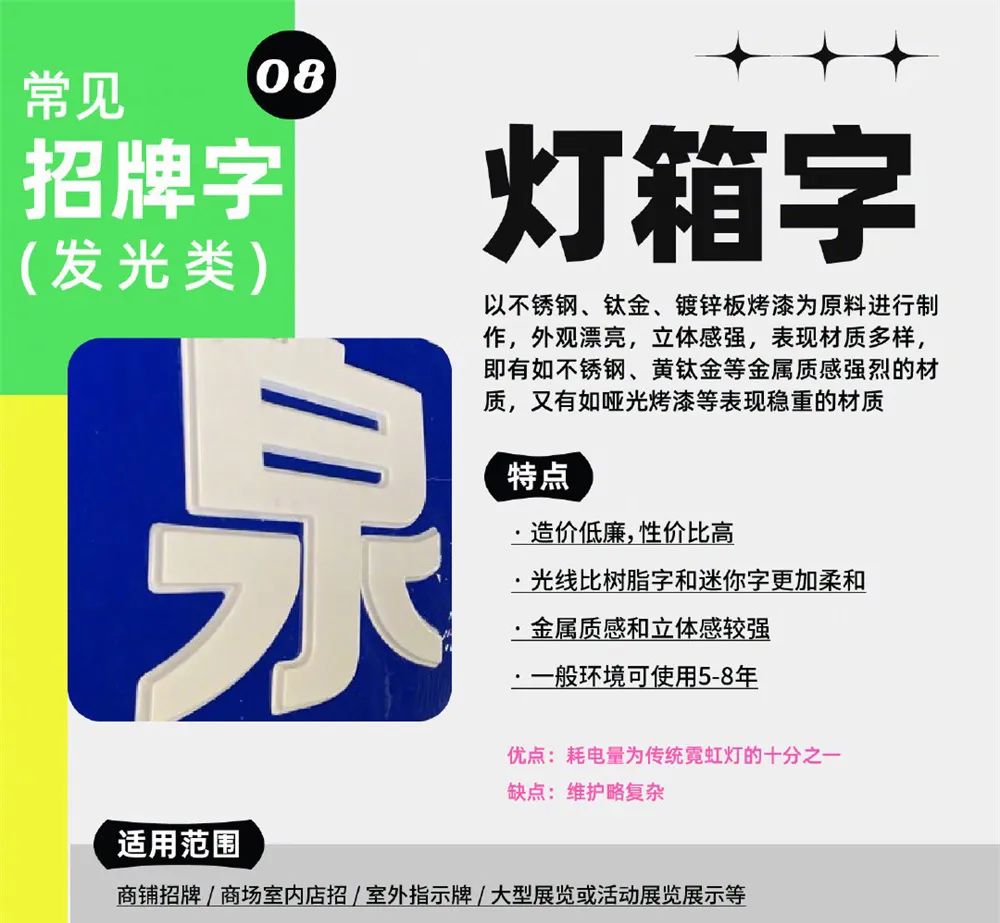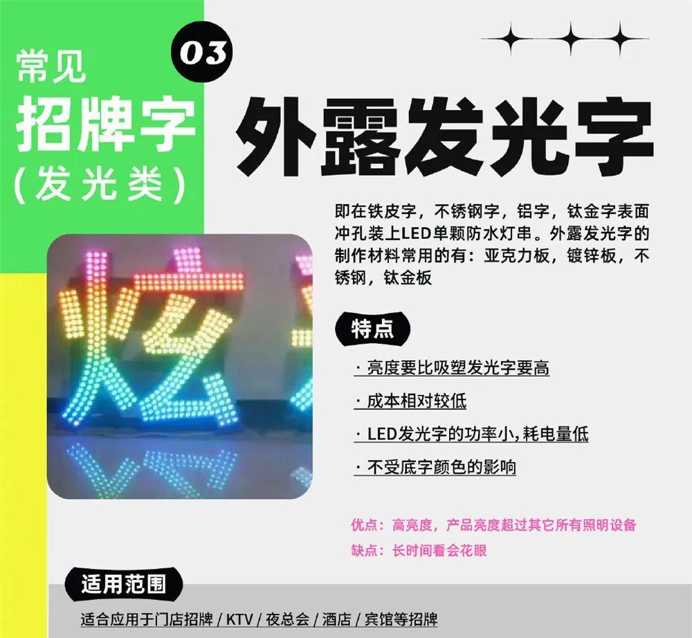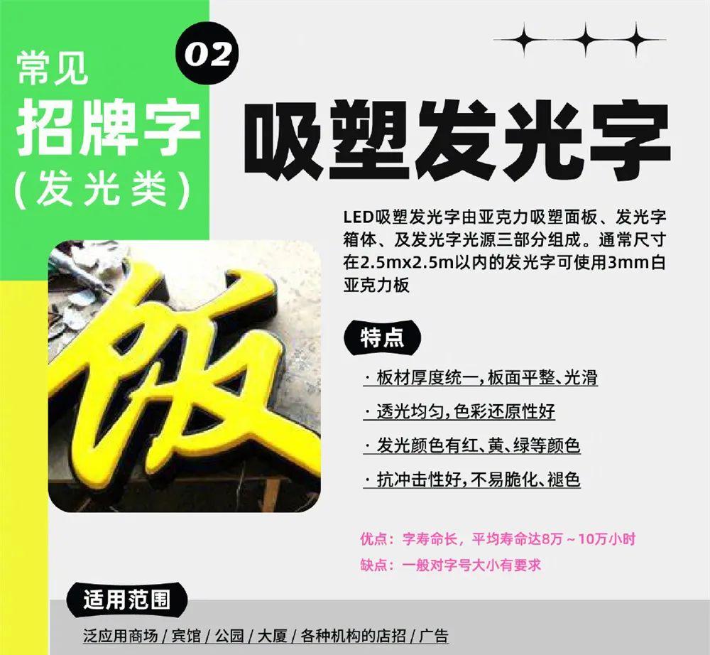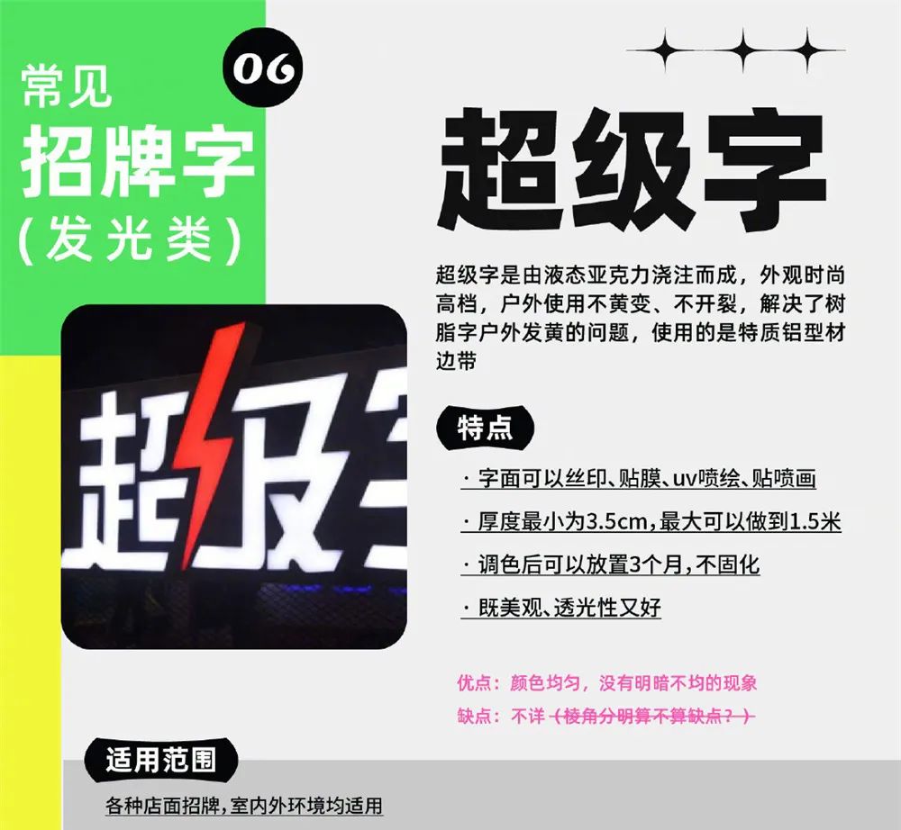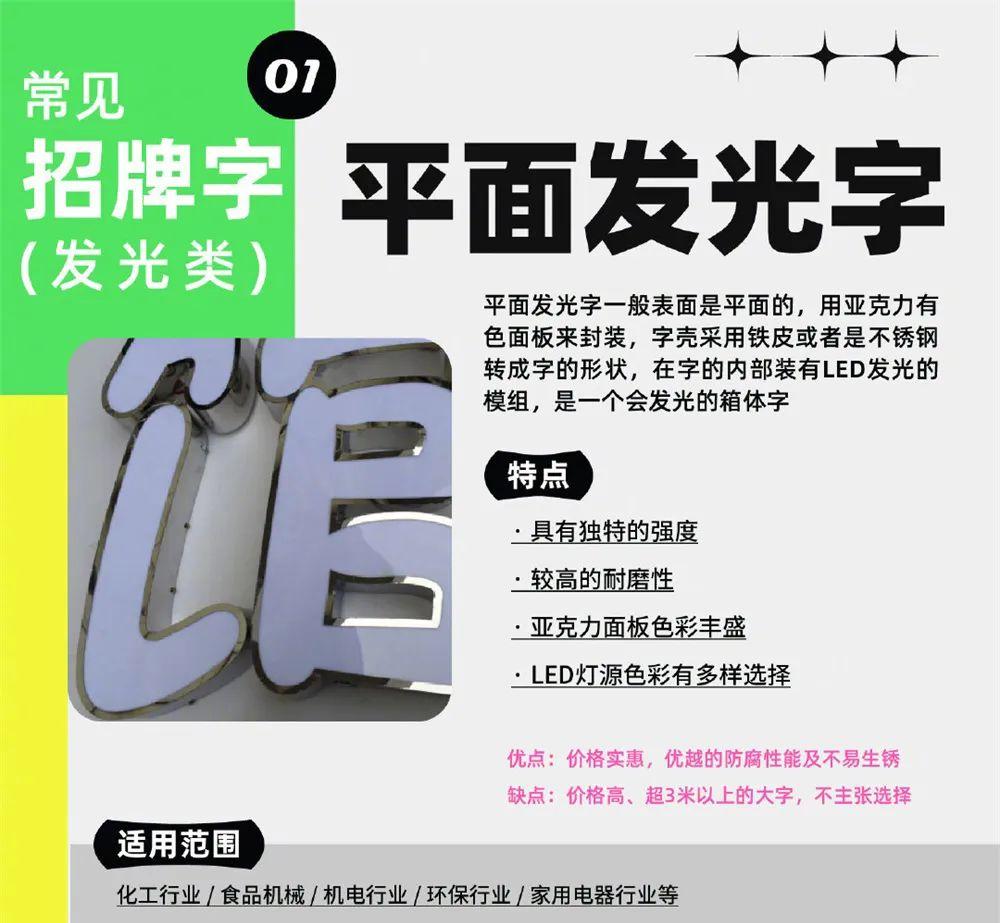 有5种材料可供选择:1、树脂字:强度高、抗冲击、防水、防酸、防碱、防爆、不怕狂风暴雨乃至冰雹袭击、防护等级达到IP68。2、亚克力(压克力):优质的广告装...