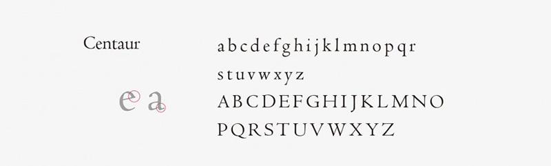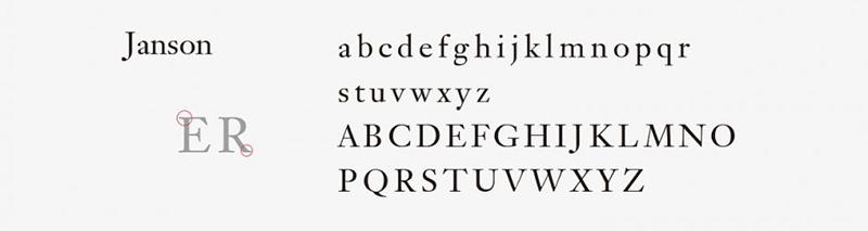 很出名的一款字体,具有不同的版本,可根据需要选择使用,Caslon540版黑度较强,适合标题用,字母比例开阔(Adobe Cason),是一款很适用的内文排版字体而ITC的版本会精致一些,粗细对比强,小写字母j的结尾粗细反差是为了圆点可以更好的呈现,不会过长过高。