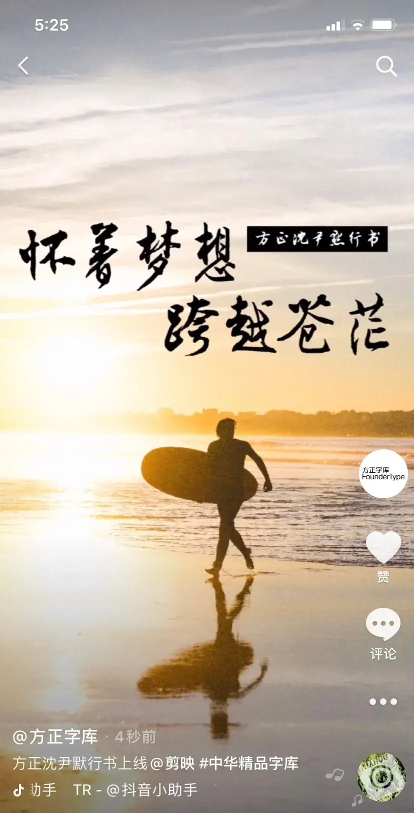 随着短视频的爆发式增长,内容传播进入“全民短视频时代”,字体作为短视频的重要视觉元素,也被越来越多的创作者重视。为了给广大短视频创作者提供更丰富、更优质的用字选择,同时推动中华优秀传统文化的传承,方正字库与抖音官方全能剪辑神器——剪映APP达成合作:由方正字库承担设计的“中华精品字库工程”首批7款字体正式登陆剪映 。