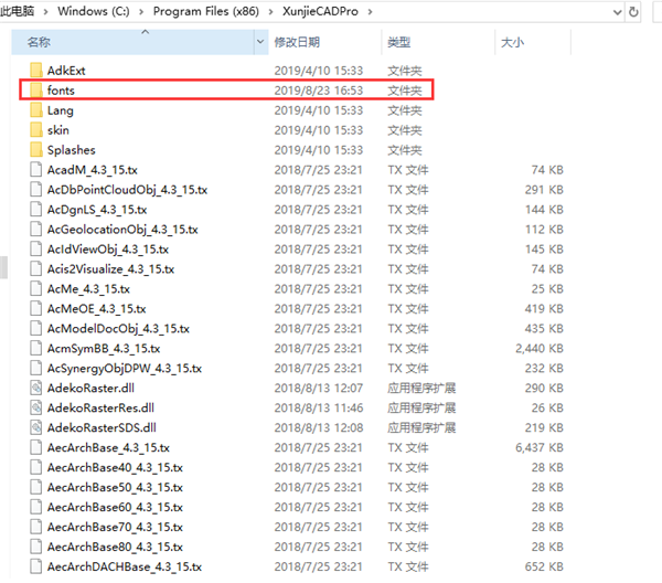 解压后,找到字体,选择复制黏贴到AutoCAD或者是安装着迅捷CAD编辑器的目录下的fonts文件夹 里即可~