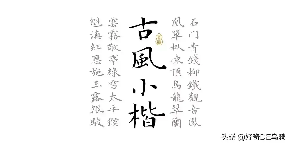喜鹊古风小楷字体介绍 :此字取法自王羲之《黄庭经》与王宠手书,有魏晋时代舒朗间架结构,亦糅合了王宠明清时代书卷气之点画特征,给人感觉干净如朗月皎洁,恬静如迎面清风。是一款味道十足的古风小楷体。