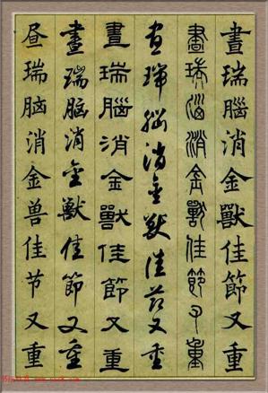 书法五大字体楷,篆,行。草。隶。篆书是大篆、小篆的统称。大篆指甲骨文、金文、籀文、六国文字,它们保存着古代象形文字的明显特点。小篆也称“秦篆”,是秦...