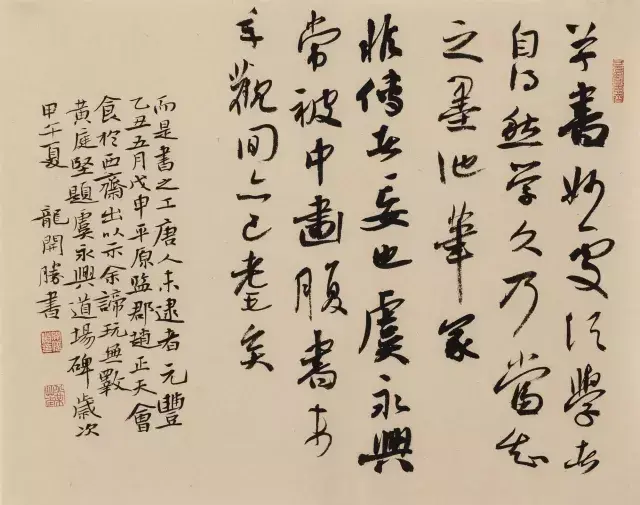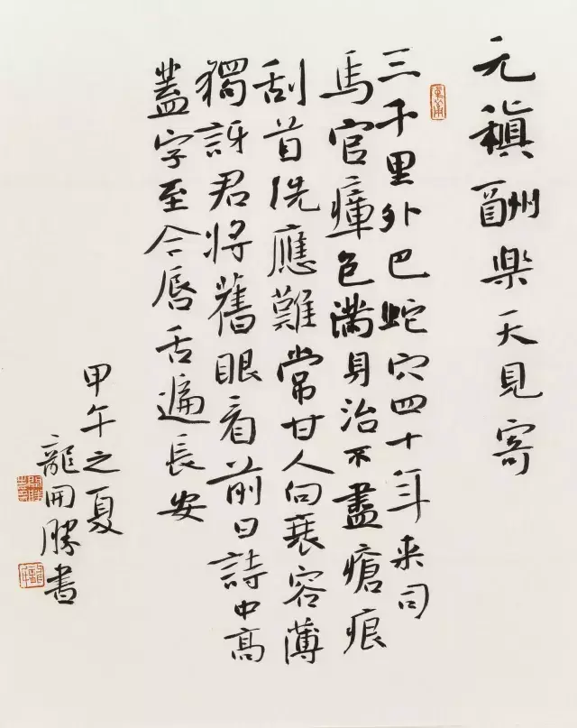 龙开胜的书法风格最近十几年来一直遵循着中和之美、雅俗共赏这一类的审美共识,他的书法定位就是结构比较严谨、古朴典雅、飘逸秀美。