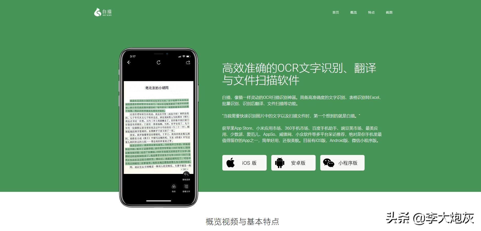 白描,提供高准确度的文字识别、表格识别转Excel、批量识别、识别后翻译、文件扫描等功能。