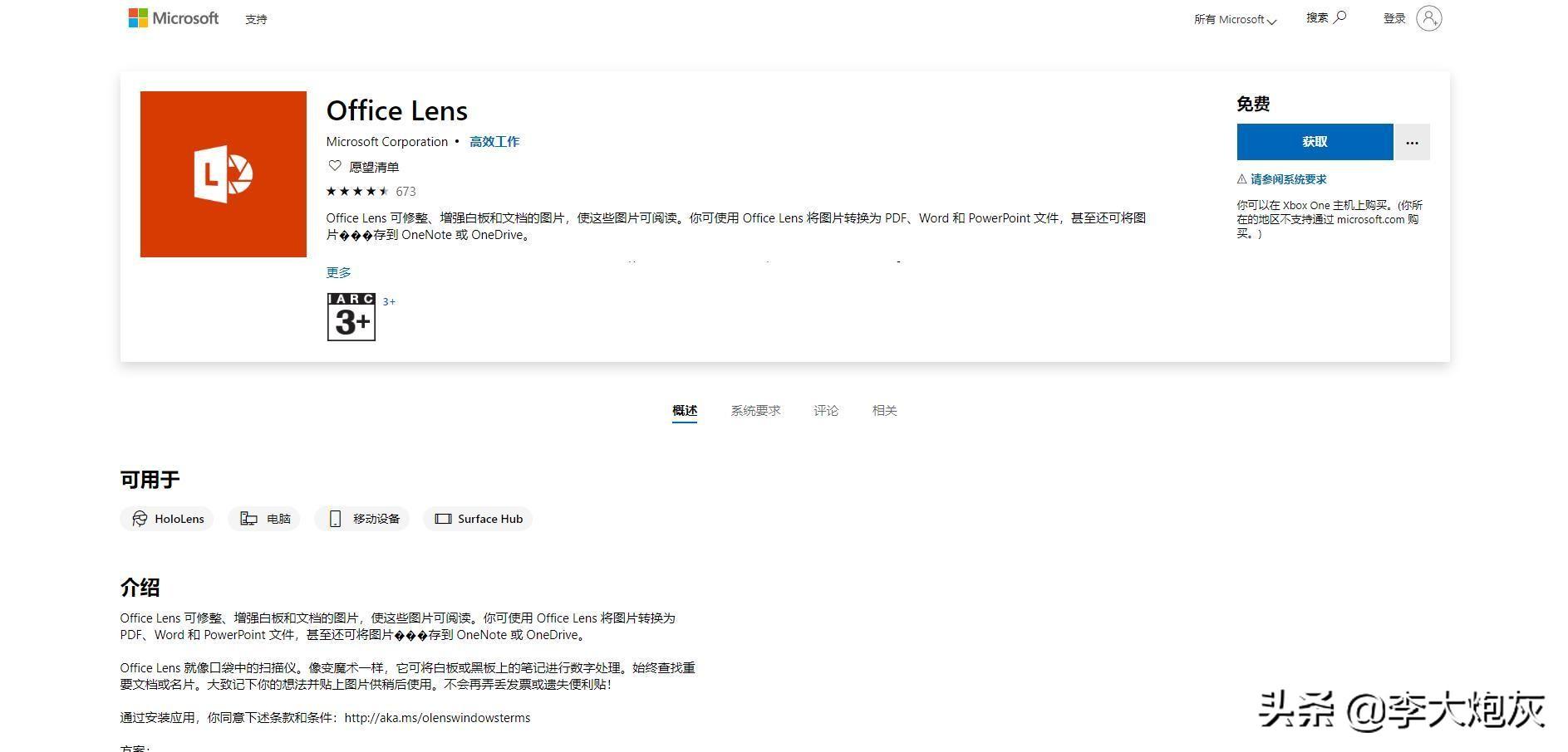 传送门:https://www.microsoft.com/zh-cn/p/office-lens/9wzdncrfj3t8?activetab=pivot:overviewtab