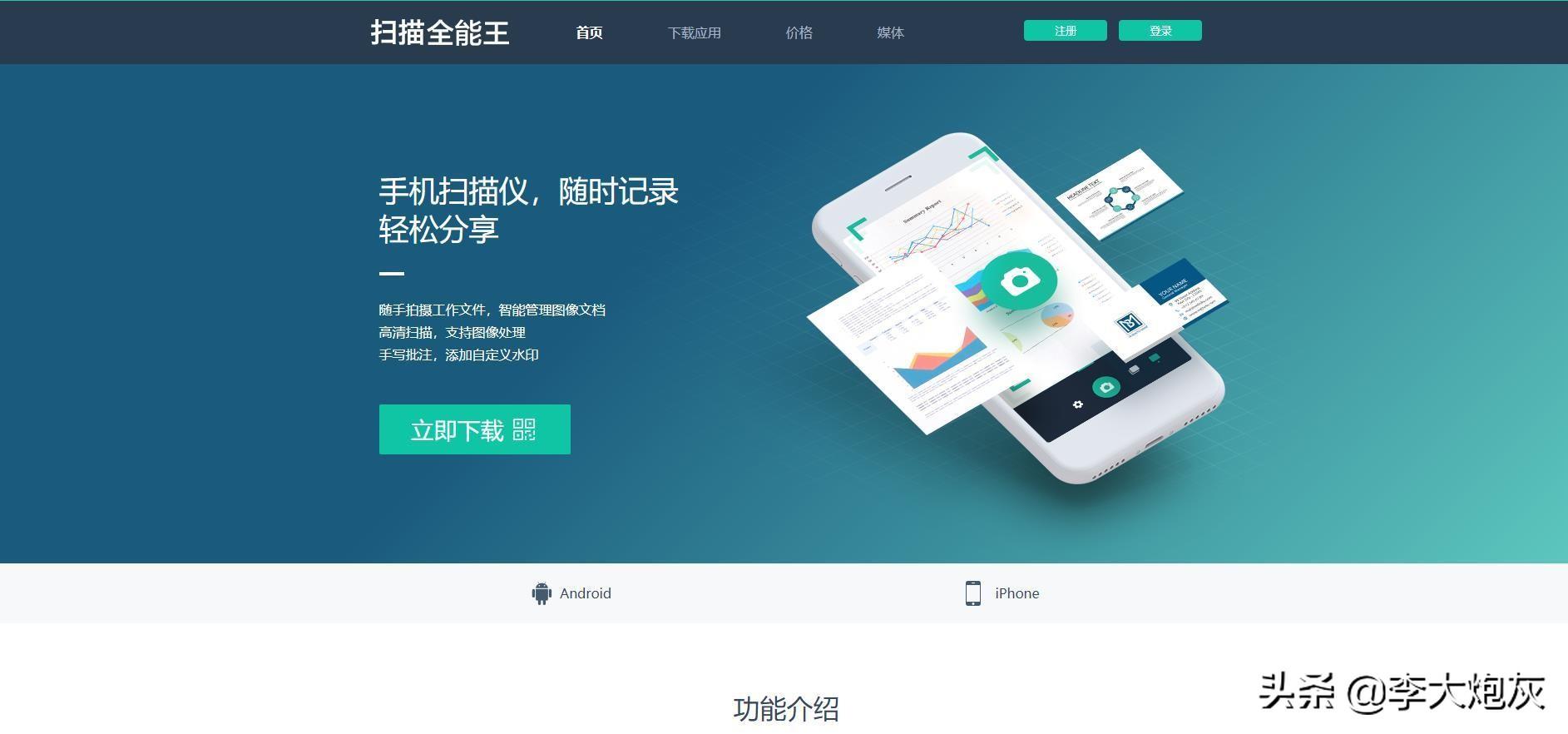 扫描全能王,提供最智能的文档管理方案。手机、平板、电脑变身随身携带的扫描仪、文件库,随时随心编辑文档等服务。