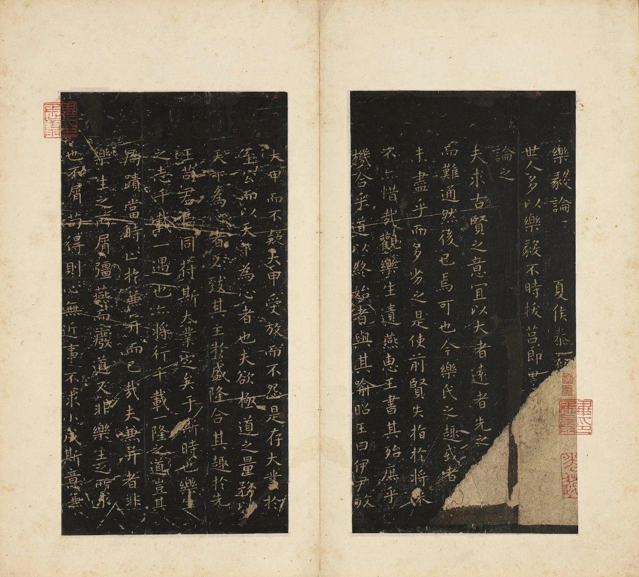 王羲之所处的魏晋时期,是隶书向楷书、章草、今草发展演变时期,王羲之擅楷书,楷书也取得了很高的艺术成就,如《乐毅论》、《黄庭经》、《东方朔画像赞》等。楷书和篆隶书相比,线条的中段没有篆隶书沉实、厚重,但起笔和收笔要比篆书、隶书精致、丰富、谨严;在横折的处理上,楷书以转折为主,相比较于篆书和隶书绞转笔法的使转,虽少了厚重和沉实,但多了几分爽利,特别是向下折笔的笔势为行草书打开单个字的结构、加强连带形成字组合和字群,以致整幅作品的贯气都起到了关键作用,这种转折用笔在篆隶用笔习惯的基础上,又为王羲之的行草书创作提供了另外一种丰富的借鉴和参考。