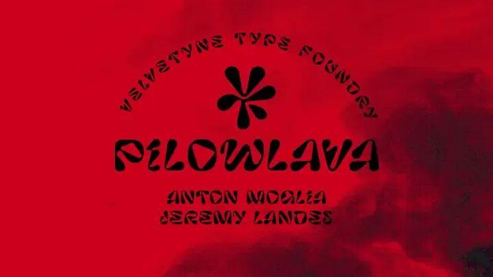 据设计师所说,它的名字来自于熔岩在水下环境中迅速冷却、凝结形成的枕状熔岩(外形浑圆,状似枕头),这是一种自然现象。同时,设计师在熔岩粘稠的能量和不受控的几何形状之间取得了一定的平衡,设计出这款极具前卫感、创造性与视觉张力的字体。